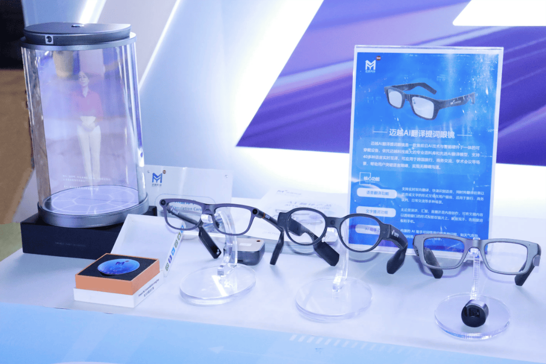 由迈越科技自主研发的具备翻译功能的AI智能眼镜,在博览会开幕典礼精彩亮相,展现了广西在人工智能硬件研发领域的最新成果…△□。